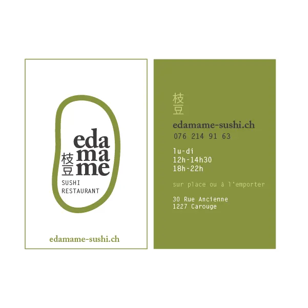 Réalisation de l'identité visuelle du restaurant de sushis Edamame, à Carouge.